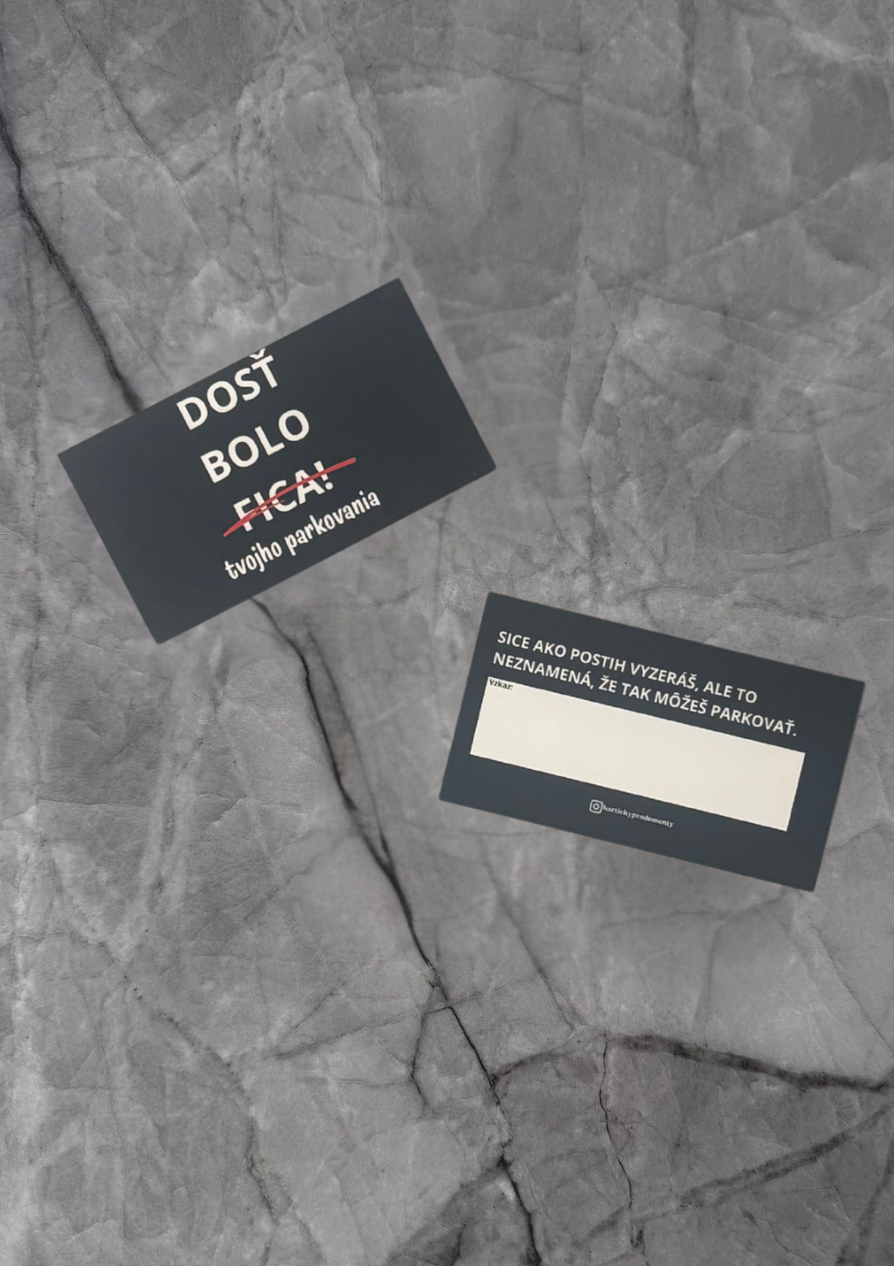 Predok: Tvári sa ako pokuta, ale nie je. Veľký nápis „DOST BOLO FICA“ a pod tým jasný verdikt: tvojho parkovania.